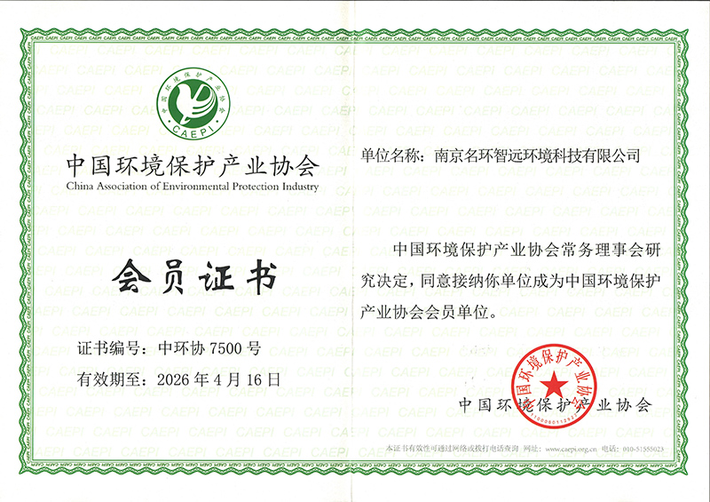 中國(guó)環(huán)境保護(hù)產(chǎn)業(yè)協(xié)會(huì)會(huì)員證書
